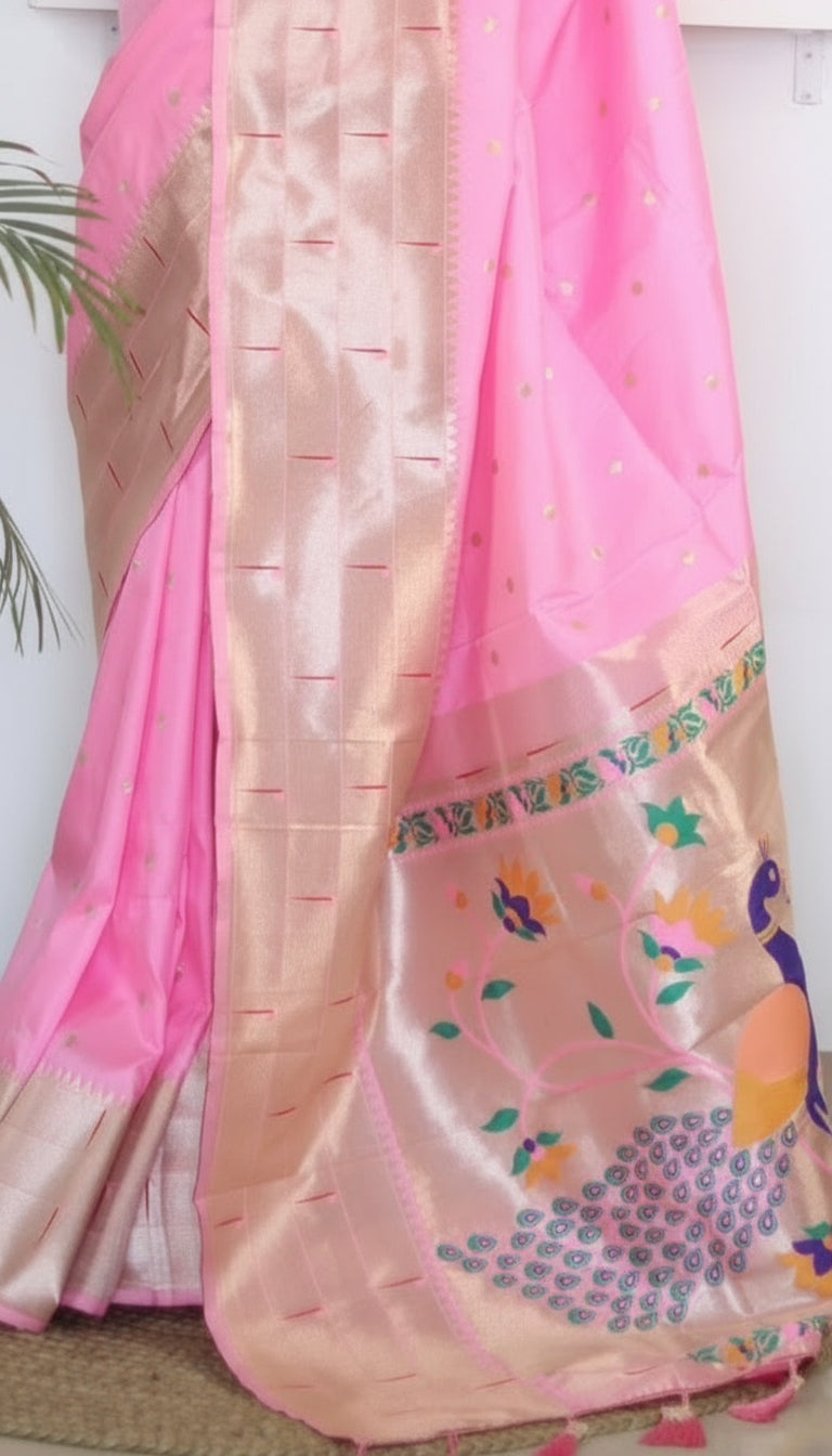 * Border Type: Gold Zari Woven Paithani Border