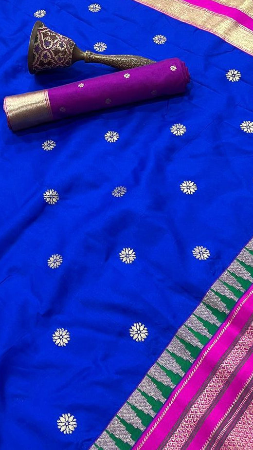 * Craft: Floral Butta with Temple Border Zari Weaved Pallu