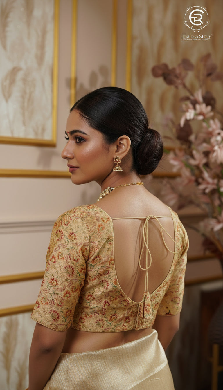 Rich Gold Silver & Multicoloured Floral Patterned Designer Silk Blouse