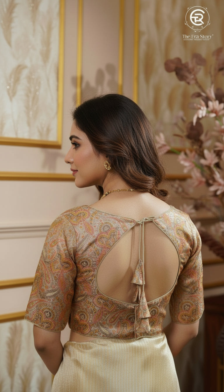 Gold Silver & Multicoloured Floral Patterned Designer Silk Blouse