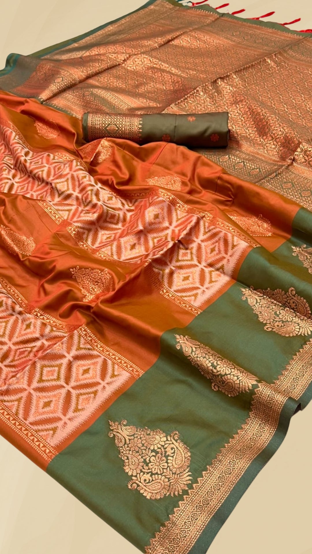 * Craft: Gold Zari Woven Floral Heavy Design with Fancy Tassels