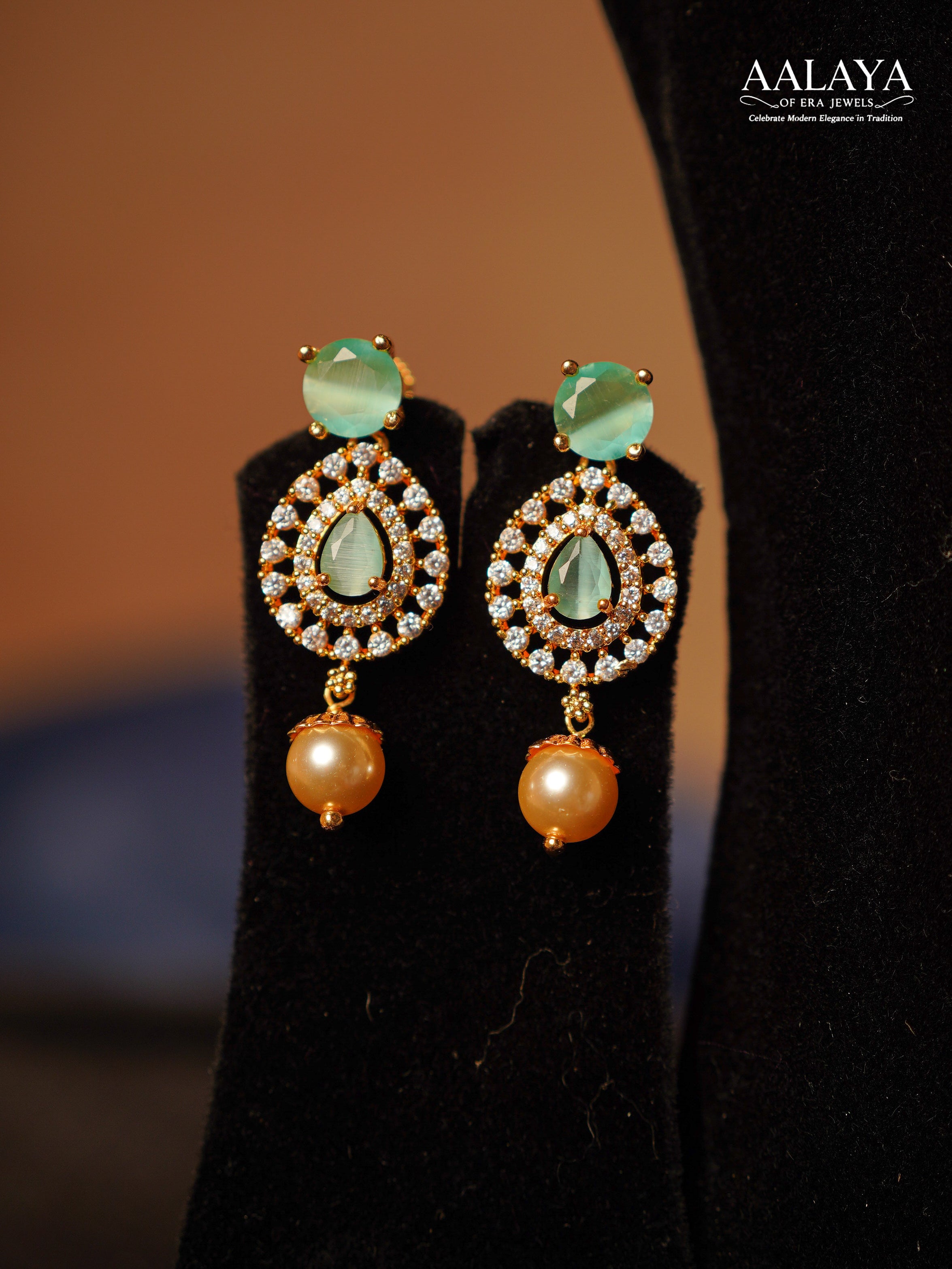 Gracefully refined with a contemporary traditional touch, this pearl necklace set features a single strand of lustrous pearls paired with a delicately crafted floral pendant arrangement. Accented with soft green stones and fine crystal detailing, the central teardrop pendant is finished with a subtle pearl drop that adds elegance and movement. Complemented by matching drop earrings, this set offers a light, sophisticated aesthetic—ideal for those who prefer understated luxury with timeless appeal