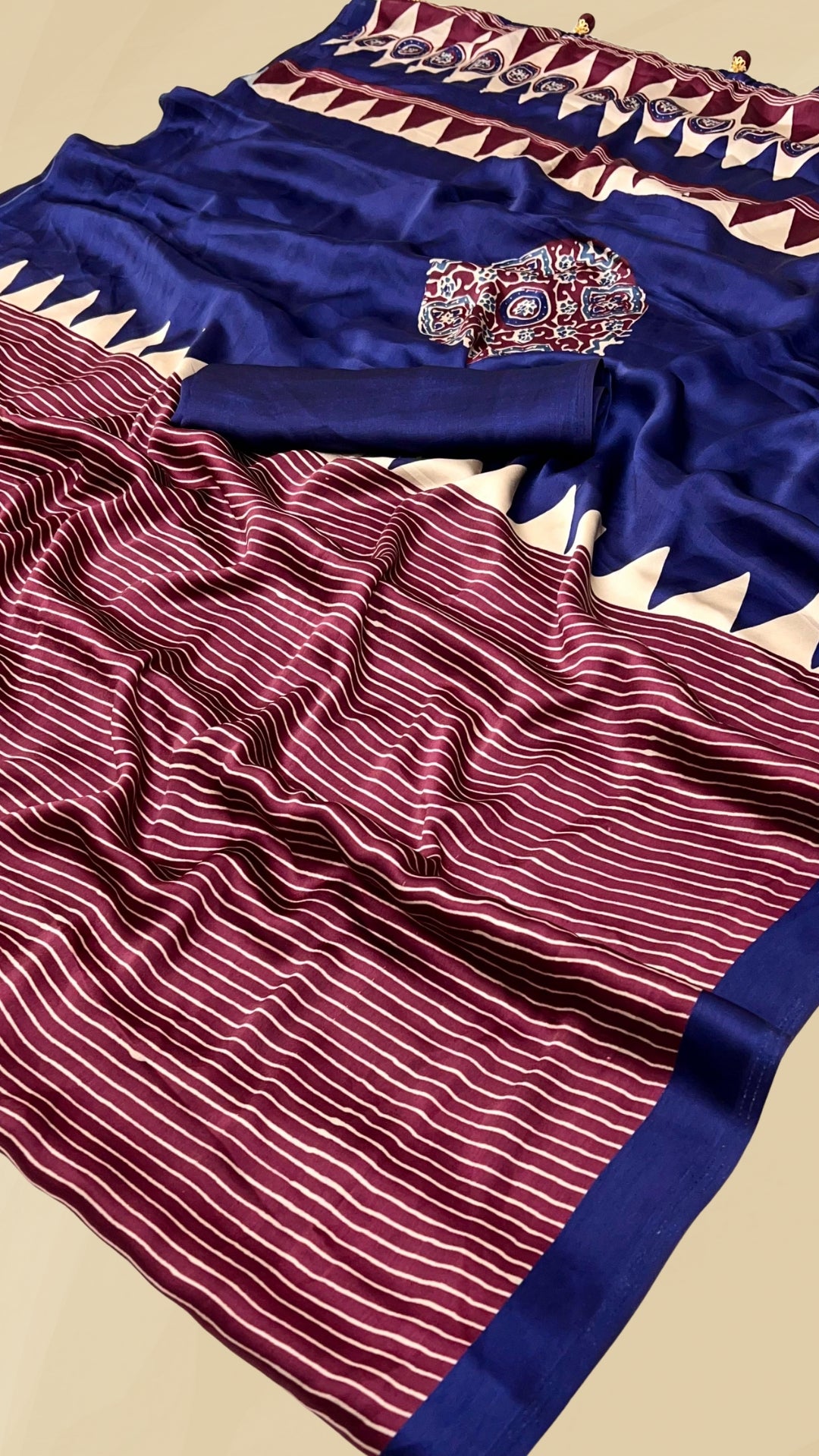 * Craft: Stripe Patterned with Contrast Ajrakh Designer Pallu