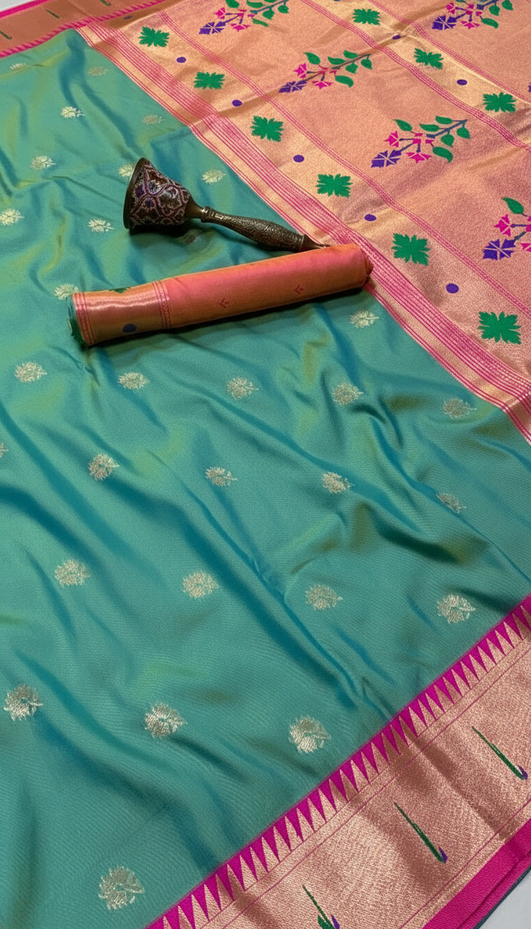 * Border Type: Gold Zari Woven Floral Paithani Border